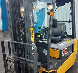 This Atlet 2000kg lift capacity electric counterbalance forklift is available to hire short or long term.Featuring work lights, side shift, a flashing beacon, reversing alarm, front, top and rear screens, this powerful forklift is suited for indoor or outdoor use.Fitted with solid elastic tyres (puncture proof) and a 3000 maximum lift height.